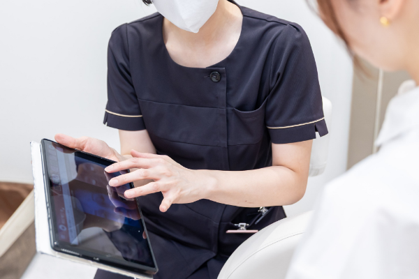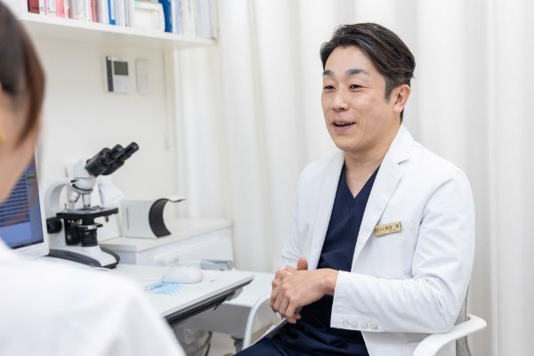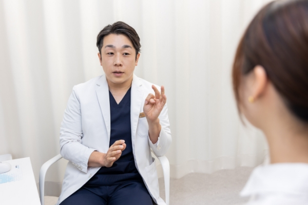 カウンセリングを行います。現在のお悩み、ご希望をしっかりとお伺いいたします。肌質などについてもこの際に診察いたします。ご希望に沿えるよう、カウンセリングには時間をかけさせて頂いております。